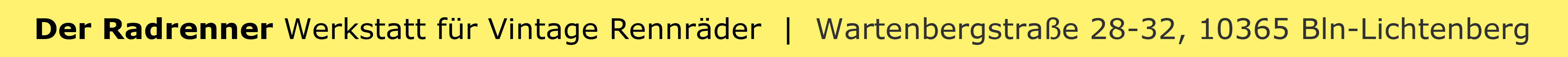 Der Radrenner findest du in der Wartenbergstraße 28-32, 10365 Bln-Lichtenberg - direkt am S-Bahnring.